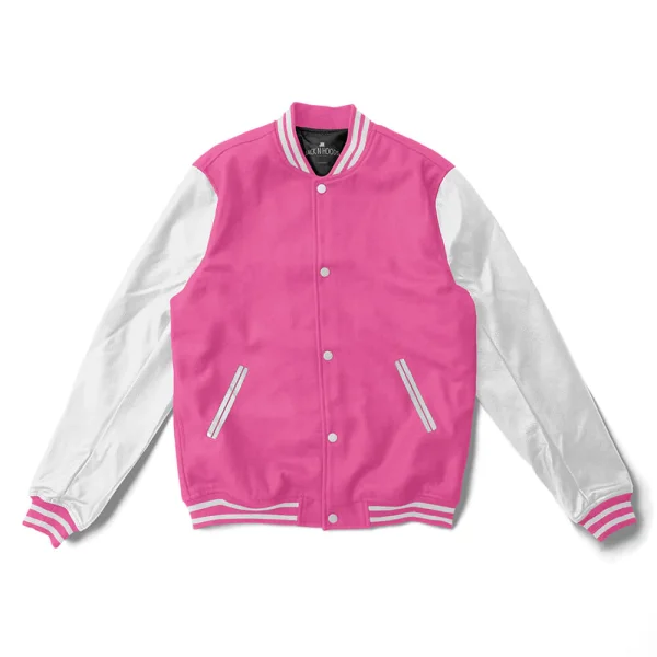 Be the first to review “Pink Varsity Jacket White Leather Sleeves” Cancel reply
